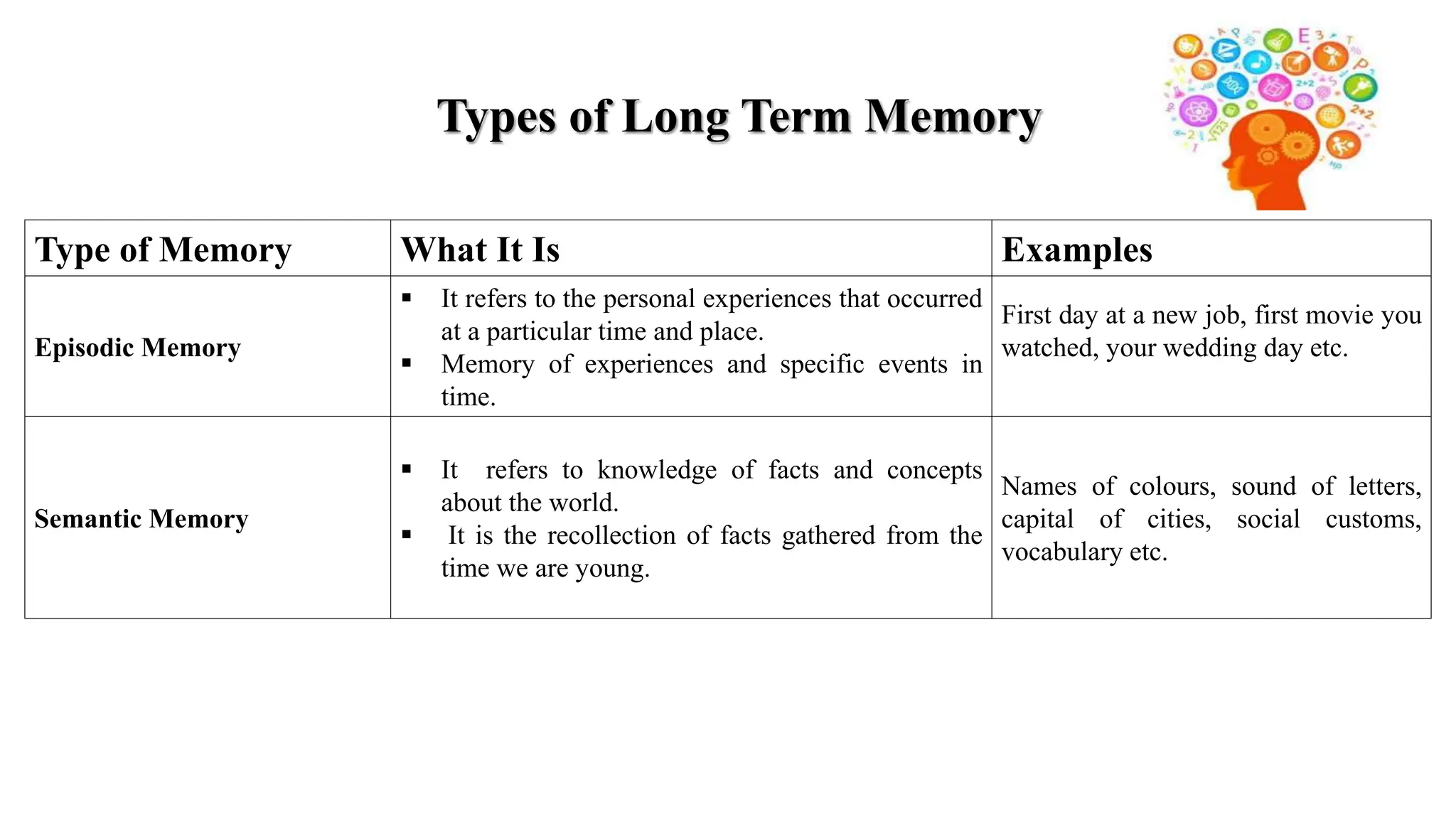 SOLVED: Explicit memory - Conscious recollection of specific ...