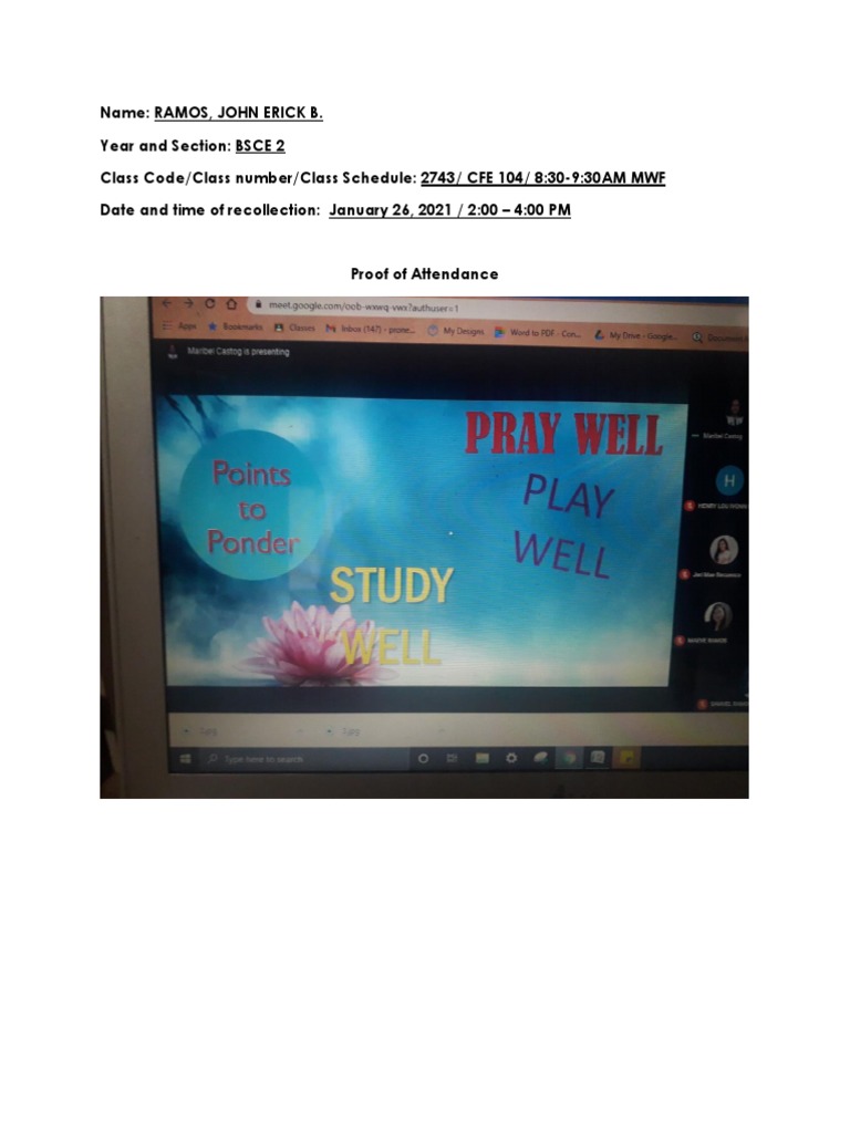 Proof of Attendance for Recollection Event | PDF