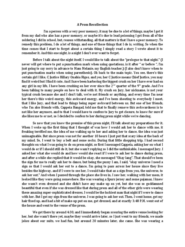 A Prom Recollection | PDF | Feeling