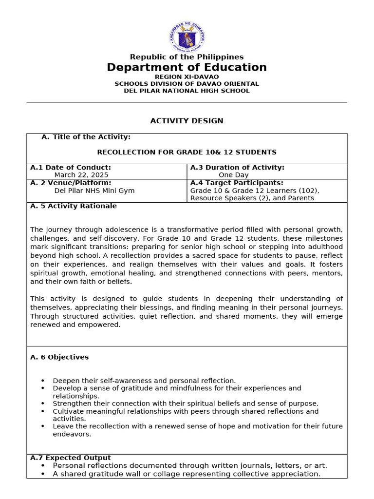 Grade 10 & 12 Student Recollection Event | PDF | Social Psychology ...