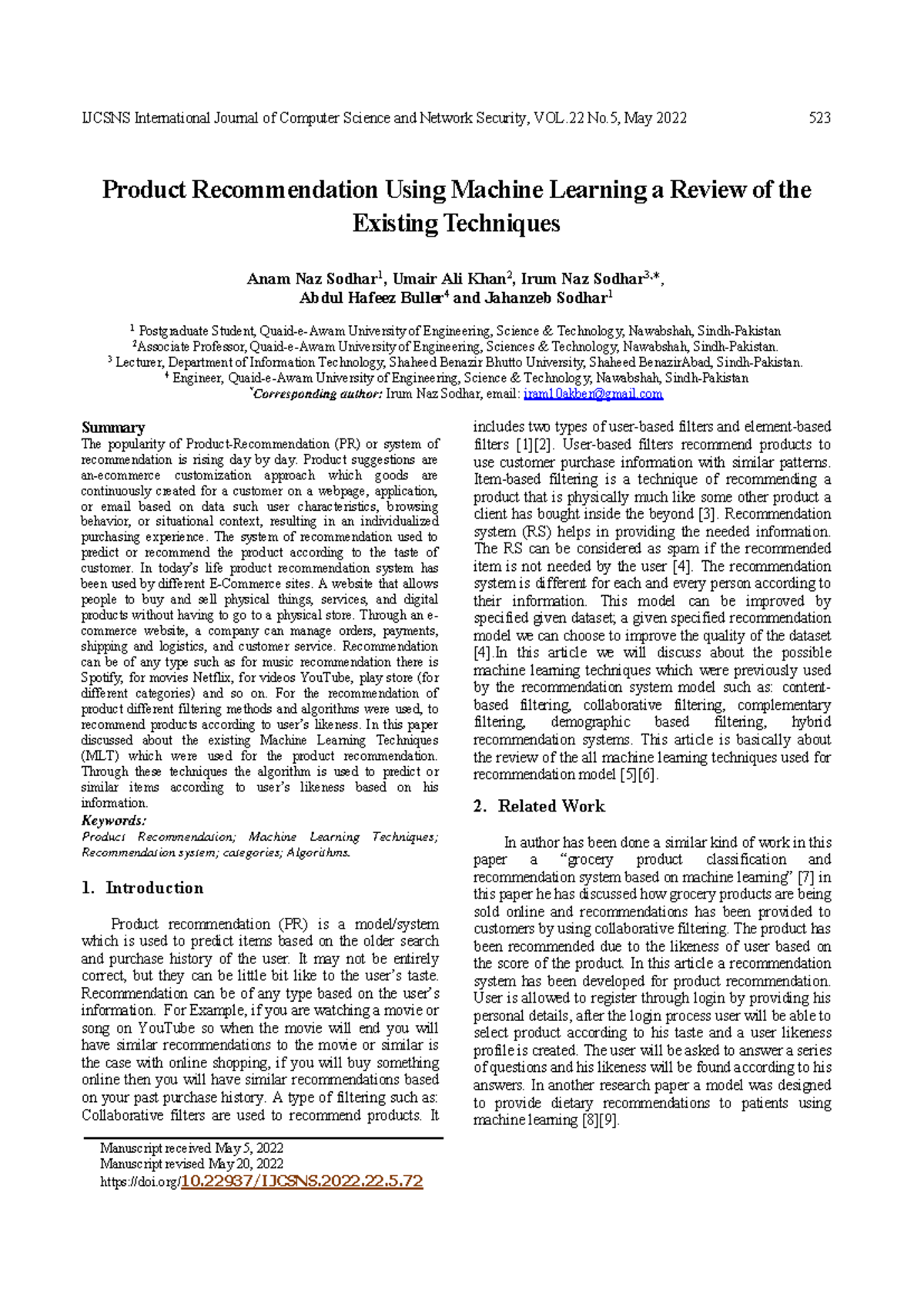 IJCSNS 22.5: Review of Product Recommendation Techniques Using ML - Studocu