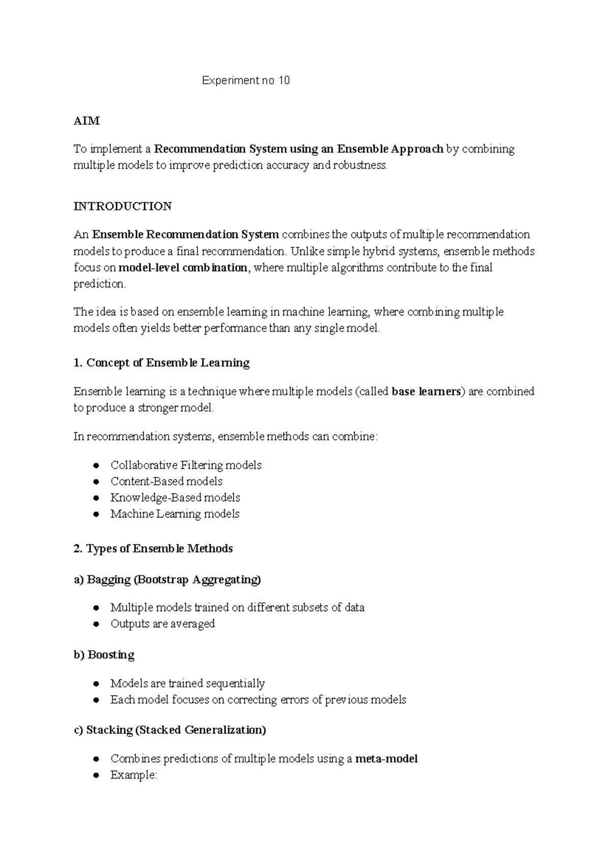 EXP 10: Ensemble Recommendation System Implementation and Analysis ...