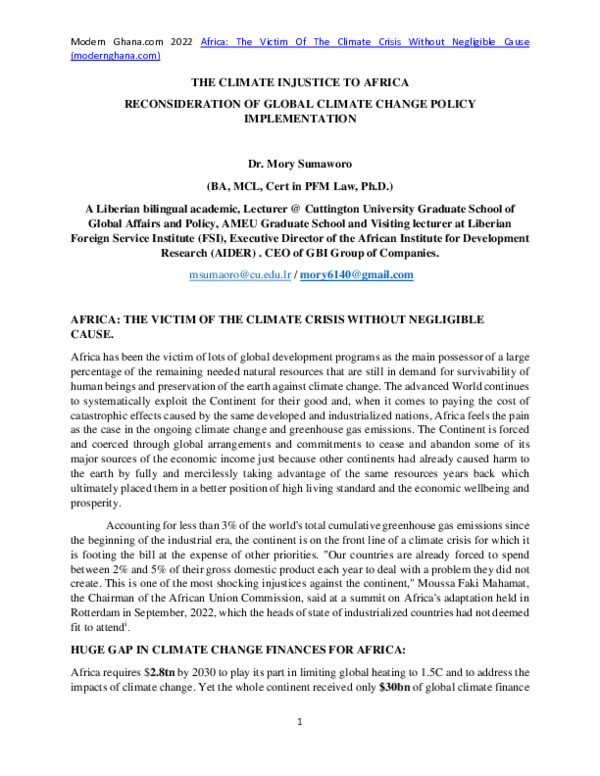 (PDF) THE CLIMATE INJUSTICE TO AFRICA: RECONSIDERATION OF GLOBAL ...