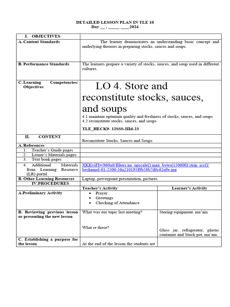 TLE-HECK10SSS-IIId: Storing & Reconstituting Stocks, Sauces, Soups ...