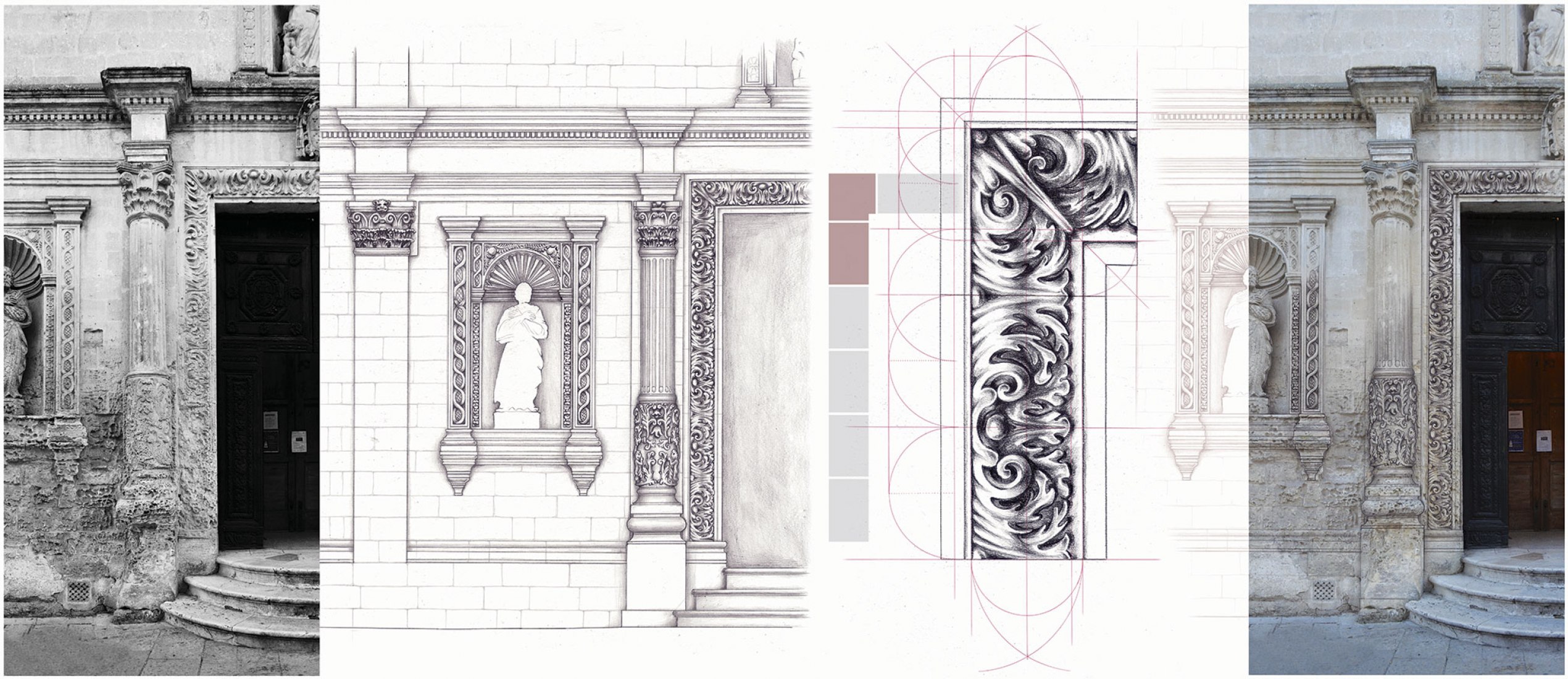 The rectified reconstruction drawings and historical photographs ...