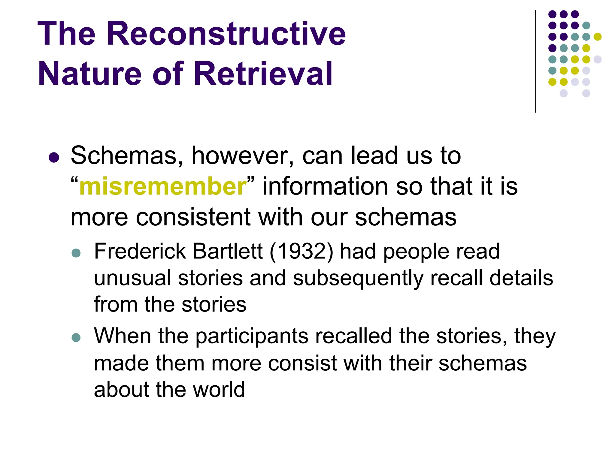 RECONSTRUCTIVE MEMORIES AND SCHEMAS — MEMORY | Enhance Memory Skills ...