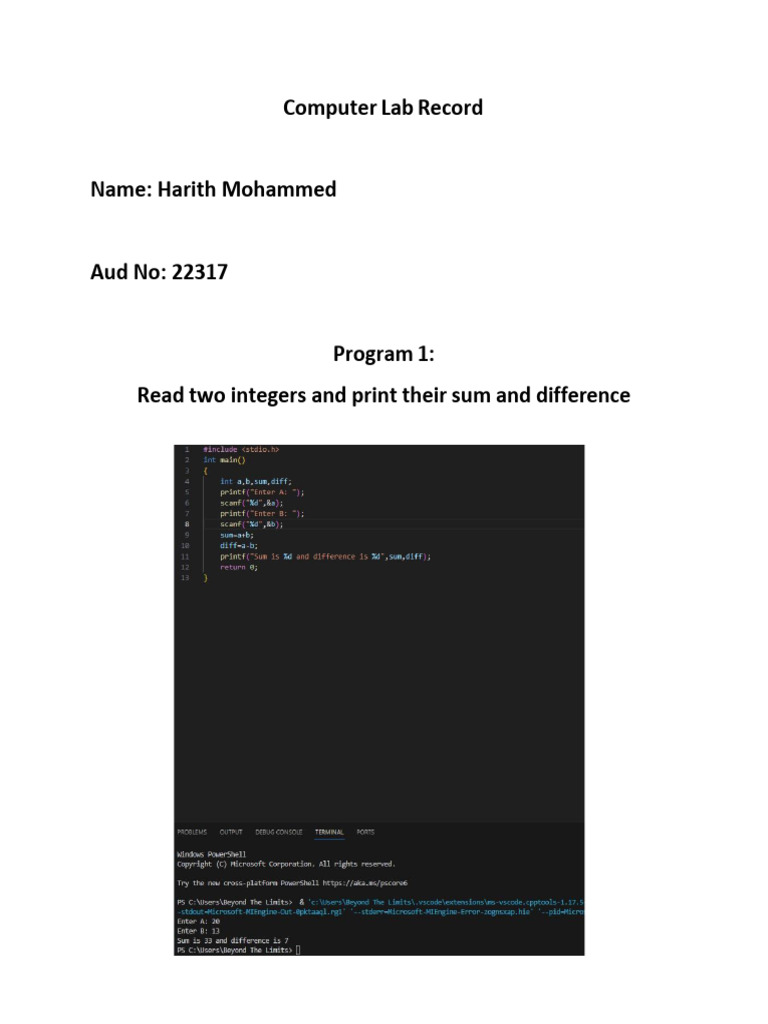 Computing fundamentals lab record - Polytechnics | DOCX