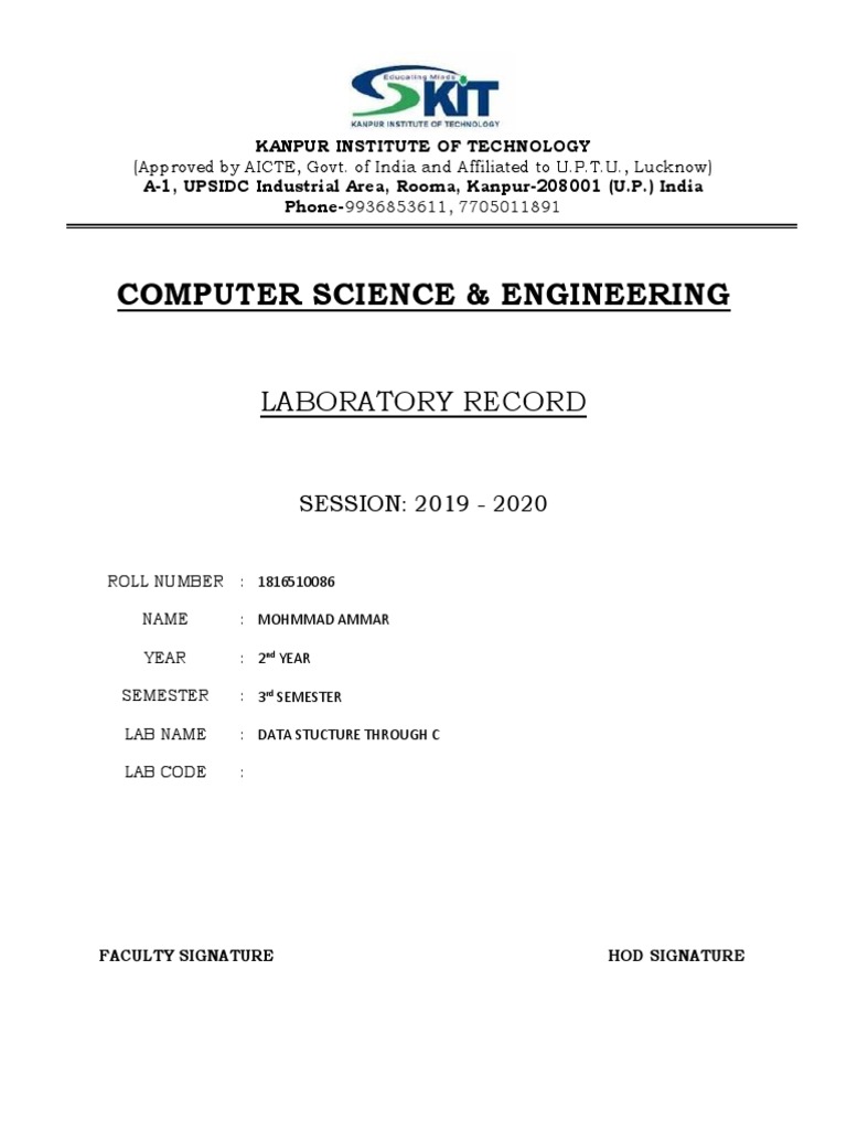Computer Science & Engineering: Laboratory Record | PDF