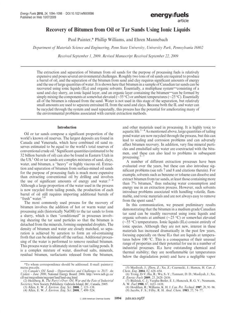 Recovery of Bitumen From Oil or Tar Sands Using Ionic Liquids | PDF ...