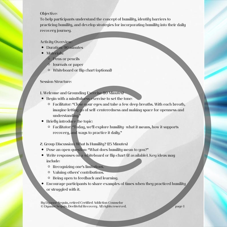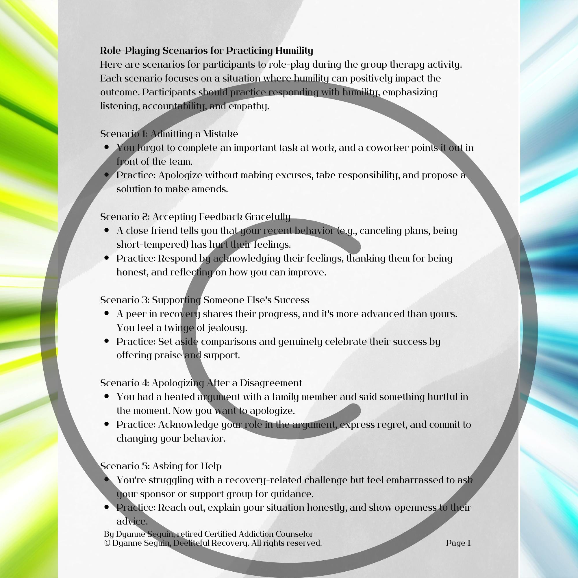 Humility Mindfulness Activity: Addiction Recovery Worksheets (PDF ...