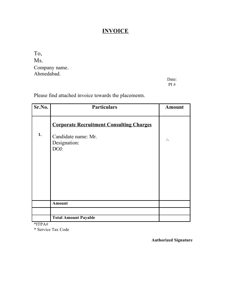 Recruitment firm invoice sample | DOC