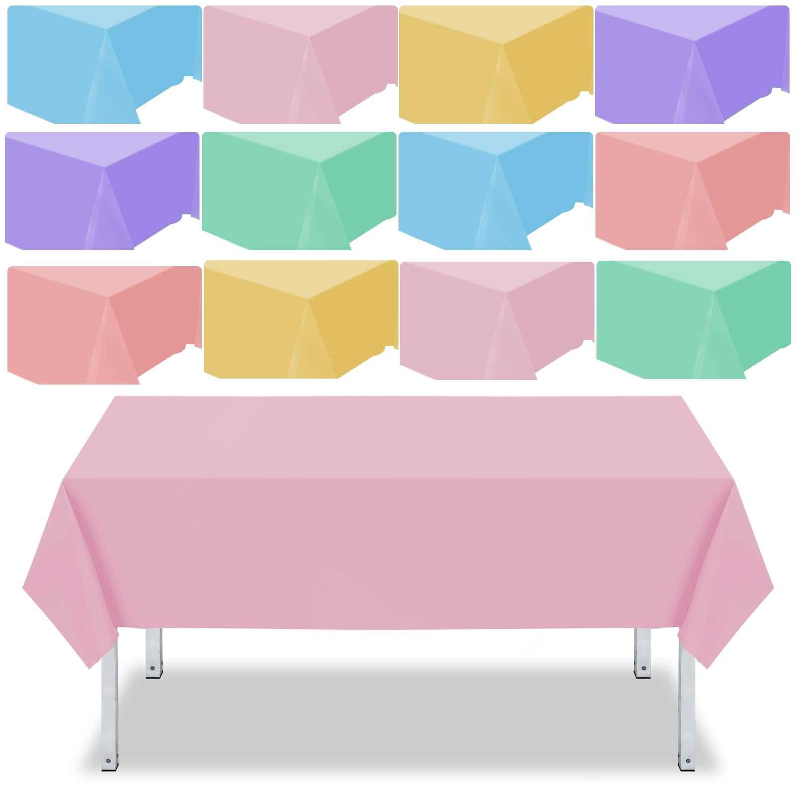 12 Pcs Assorted Color Disposable Plastic Tablecloths Rectangle Table ...