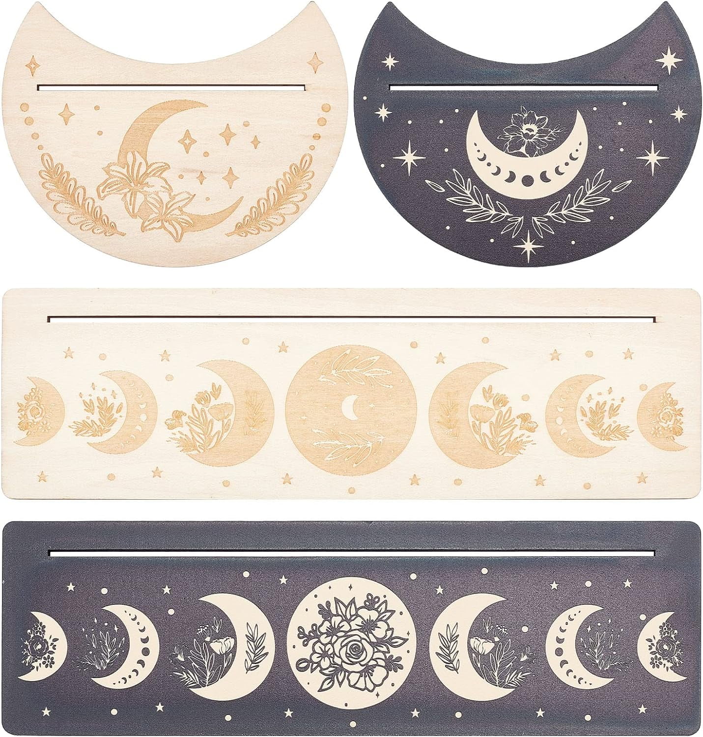 4 Pieces 2 Colors Wooden Tarot Card Stand Holder Moon Phase and Flowers ...
