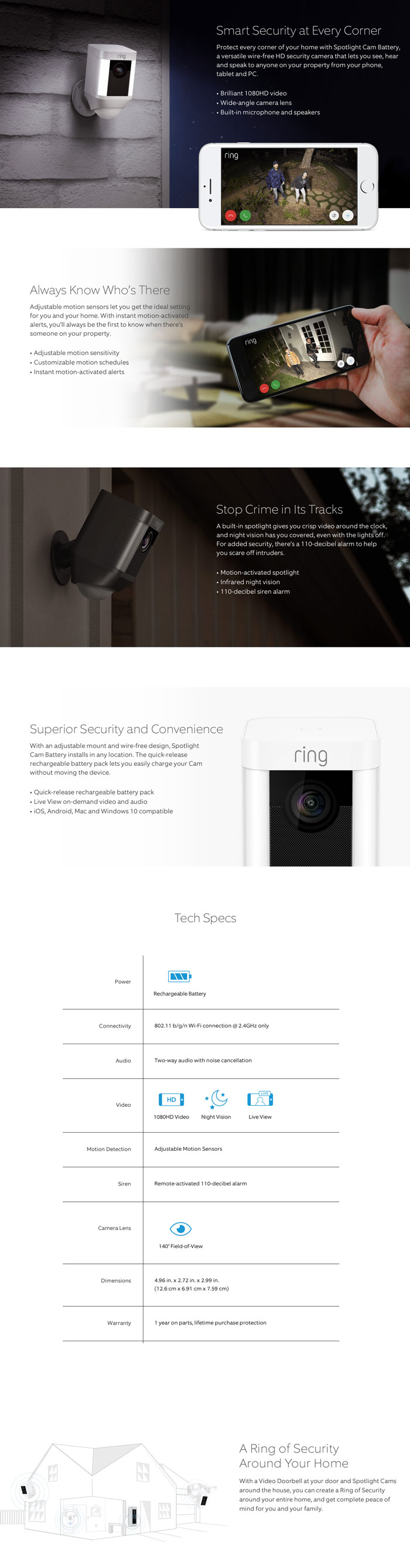 Ring Spotlight Cam Battery Outdoor Rectangle Security Wireless Standard ...