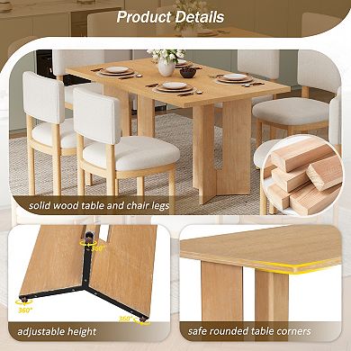 Pnronnc 6-Piece Dining Set Wood Kitchen Table Set with Rectangular ...