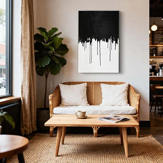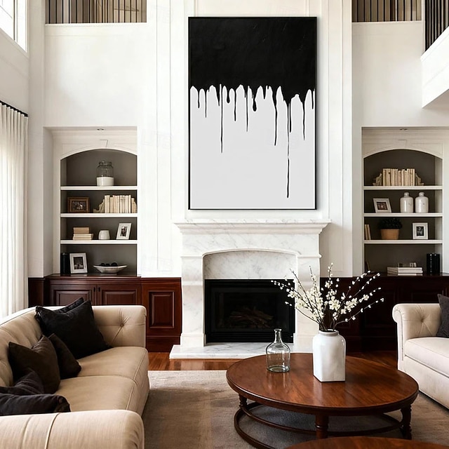 Abstract White Canvas Wall Art with Black Drips Modern Minimalist ...