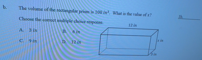 Solved: The volume of the rectangular prism is 108in^3. What is the ...