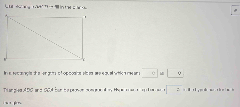 Solved: Use rectangle ABCD to fill in the blanks. In a rectangle the ...