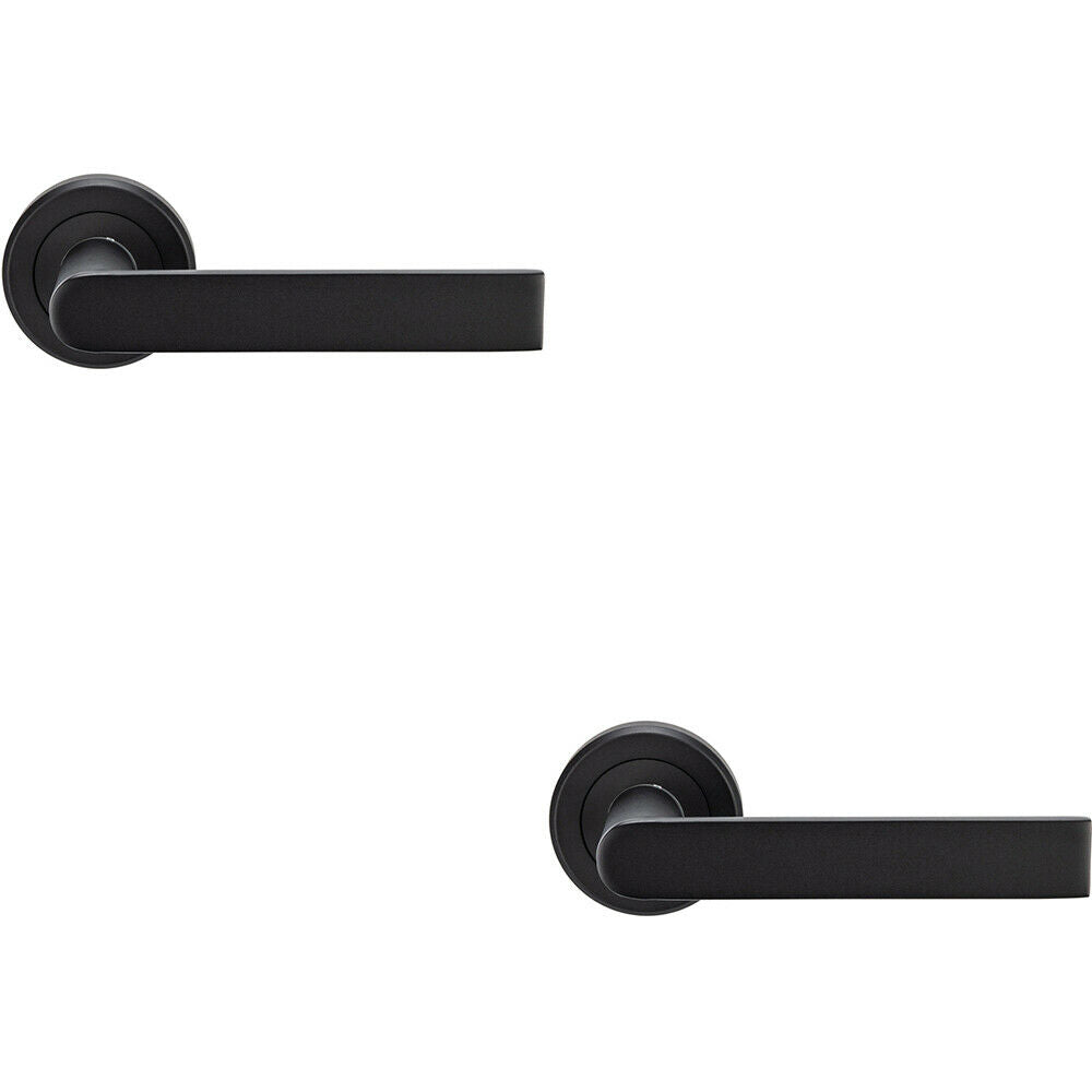 2x PAIR Flat Rectangular Bar Handle on Round Rose Concealed Fix Matt Black