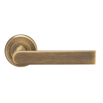PAIR Flat Rectangular Bar Handle on Round Rose Concealed Fix Antique Brass