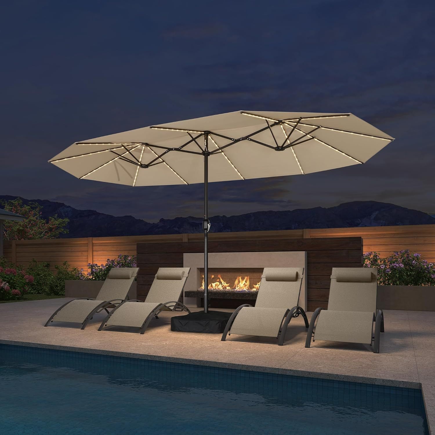 15ft Large Patio Umbrella with Solar Lights, Double-Sided Outdoor ...