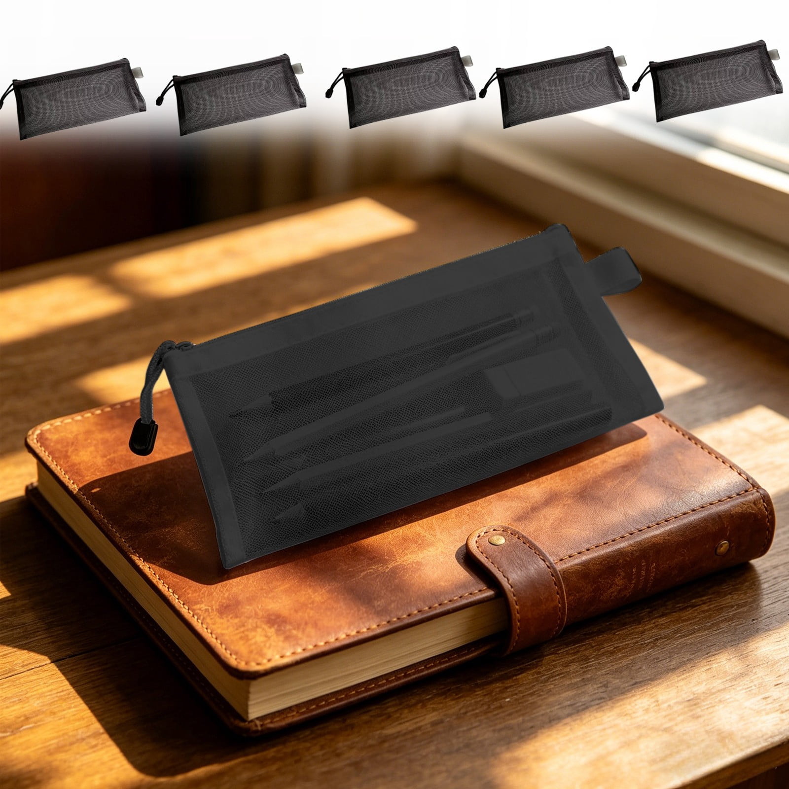 5Pcs Transparent Mesh Pencil Case Large Capacity Retro Portable ...