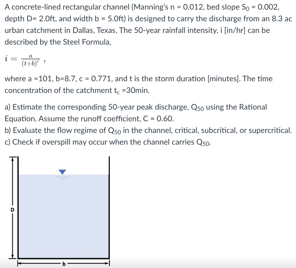Solved Problem II: A concrete-lined rectangular canal | Chegg.com