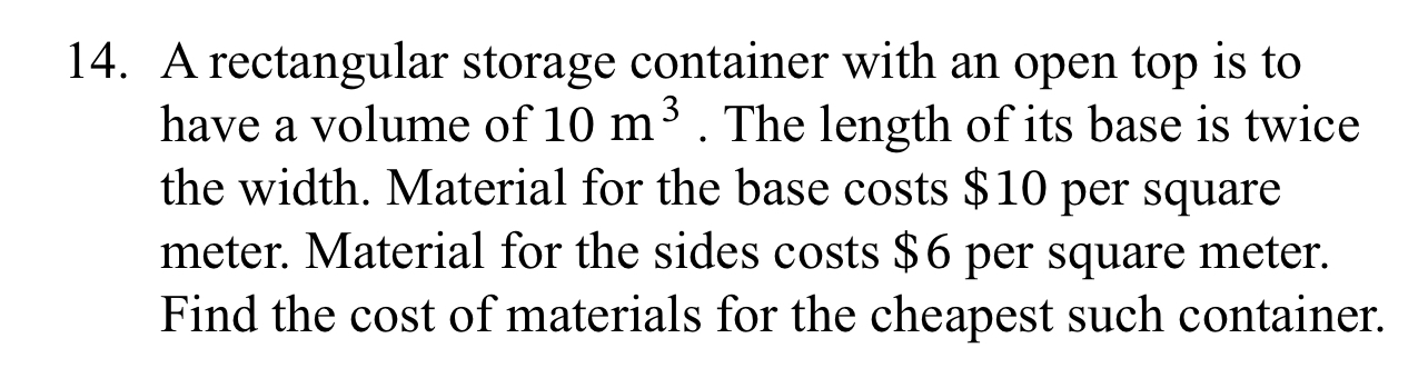 Solved A rectangular storage container is to have a volume | Chegg.com