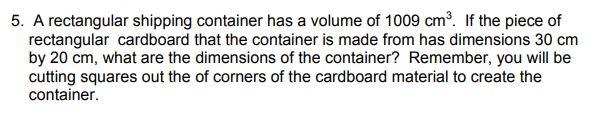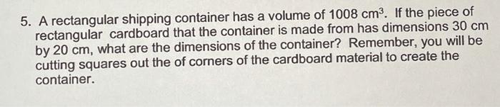 Solved 5. A rectangular shipping container has a volume of | Chegg.com