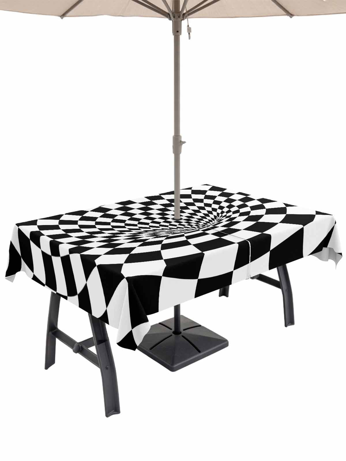 Black White Checker Rectangle Outdoor Tablecloth with Umbrella Hole ...