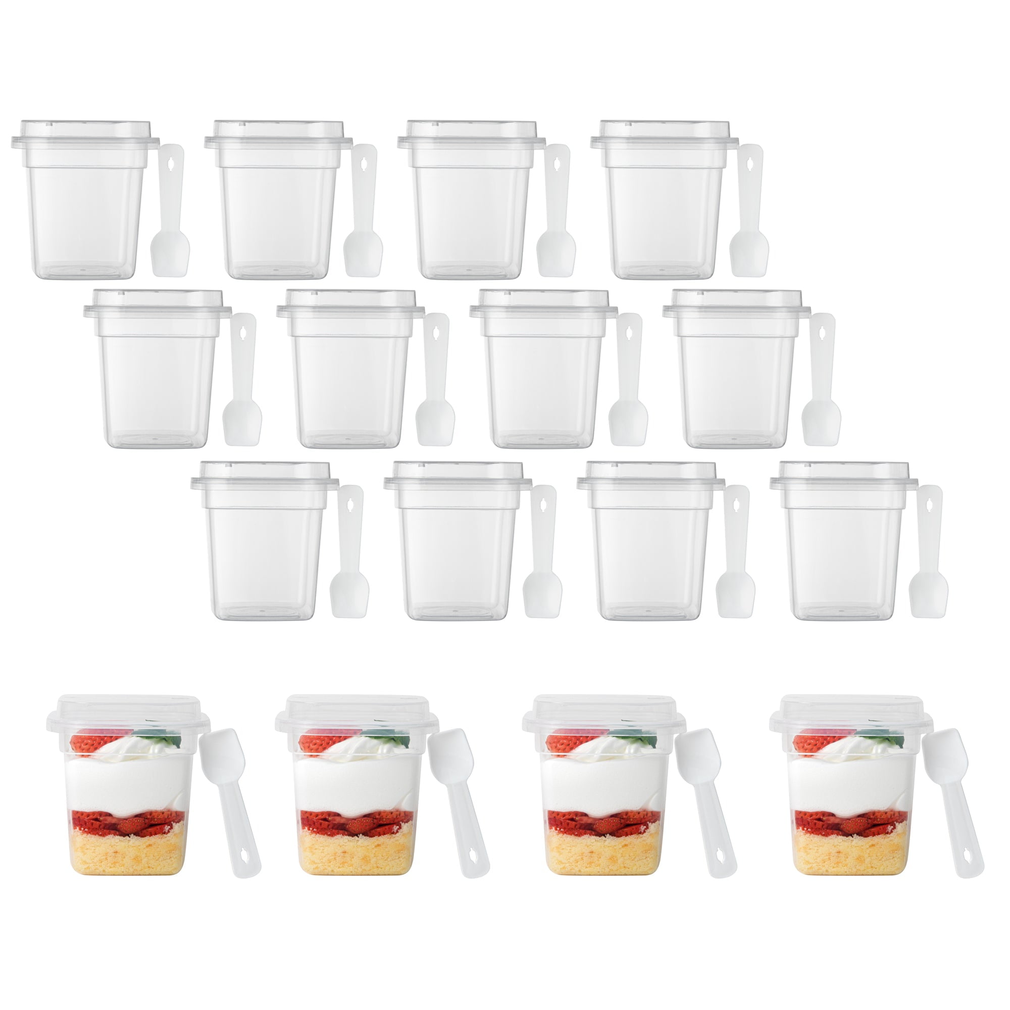50 Pack 14OZ Rectangle Clear Plastic Dessert Cups with Lids and ...