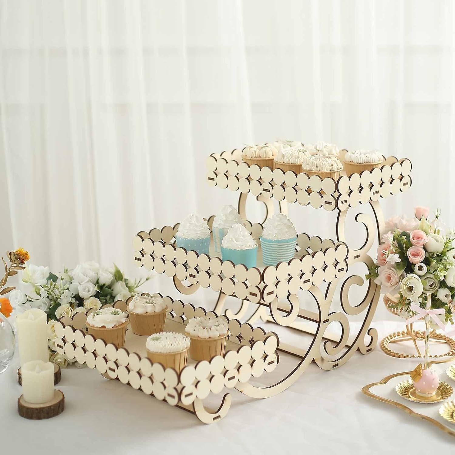 22" Natural Wooden Laser Cutout Dessert Serving Platter Display ...