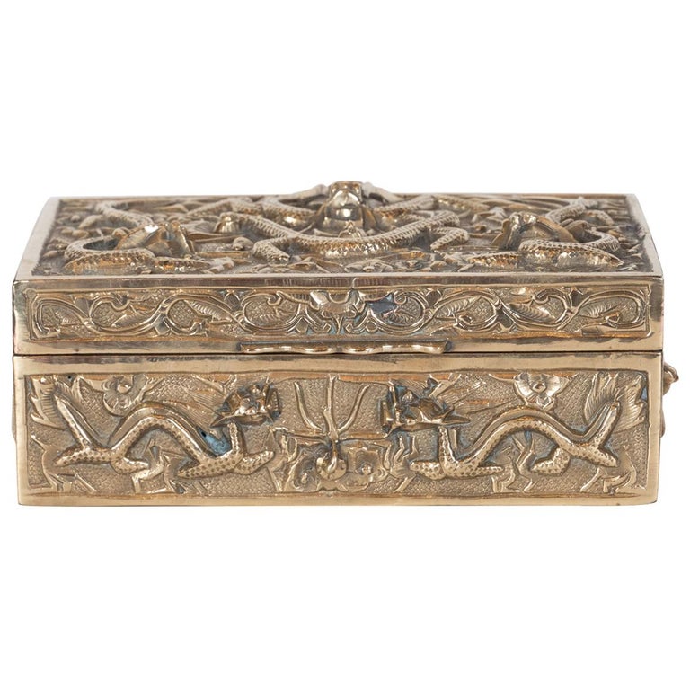 Art Deco Brass Rectangular Decorative Box with Dragon Motif in High ...