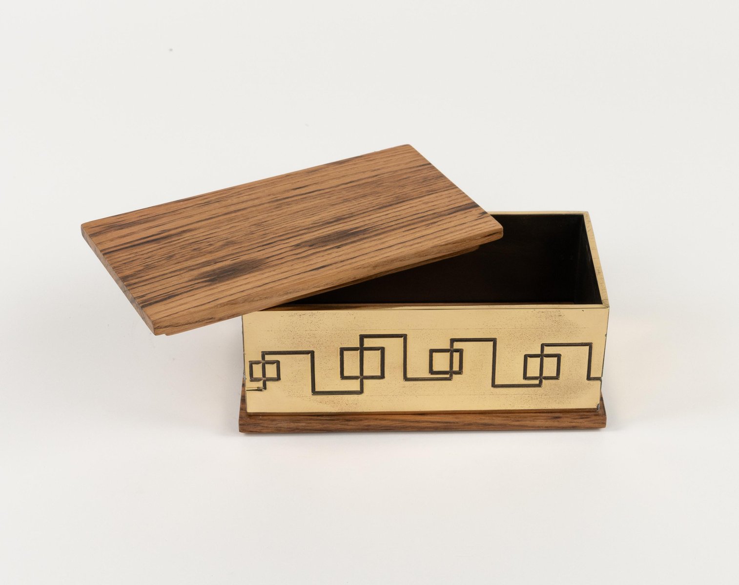 Rectangular Decorative Box in Brass and Wood Luciano Frigerio Style ...