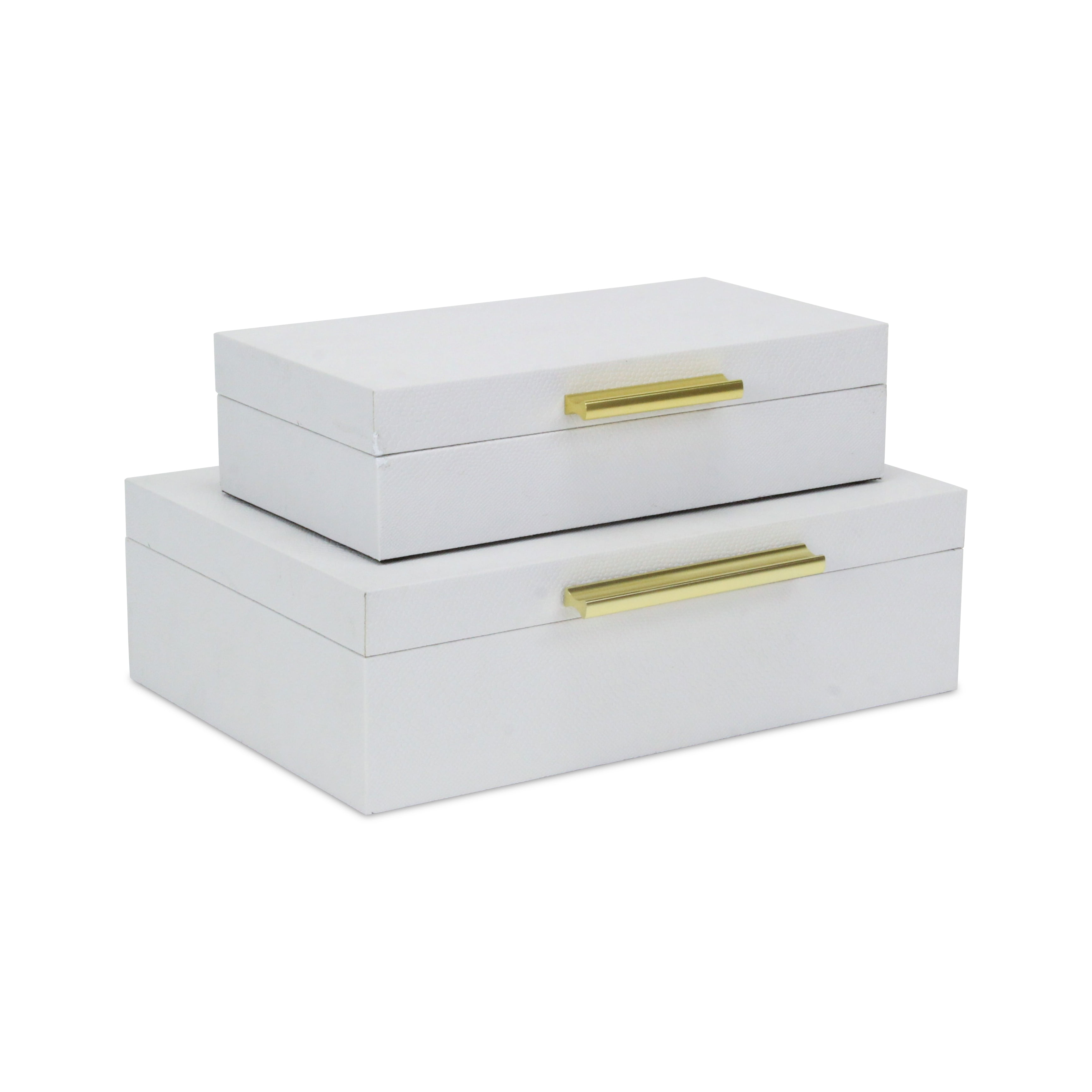 Lusan Rectangular Decorative Box Set - White Faux Snakeskin - Walmart.com