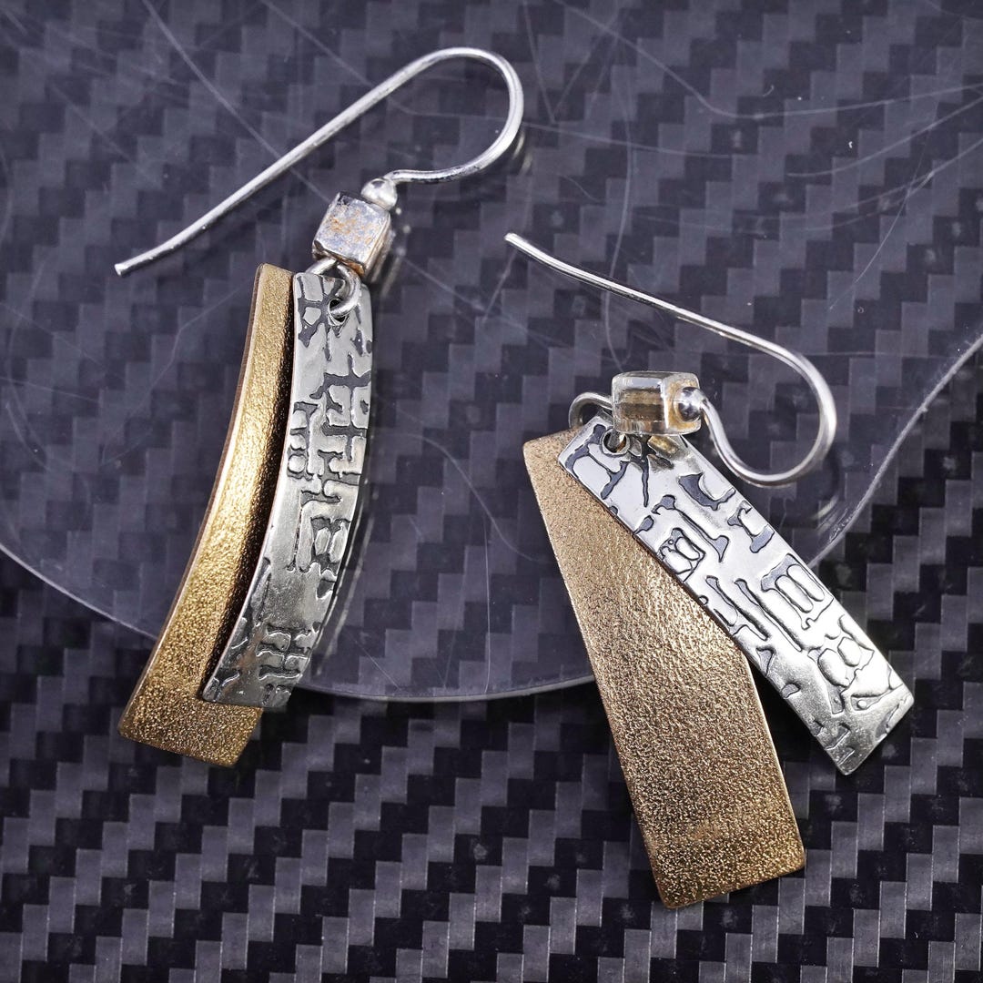 Vintage Two Tone Sterling Silver 925 Rectangular Discs Earrings, Silver ...