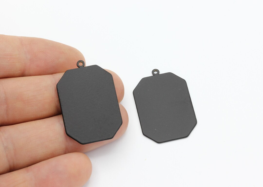 Black Plated Rectangle Disc, Big Rectangular Stamping Pendants With 1 ...
