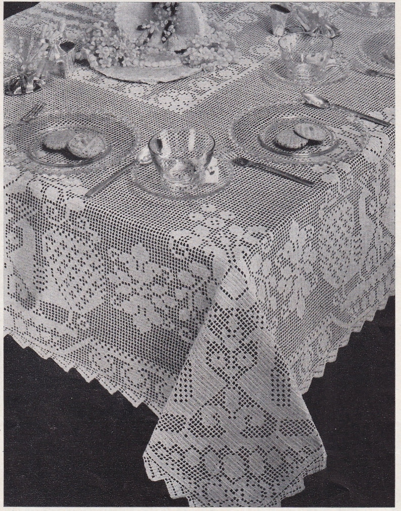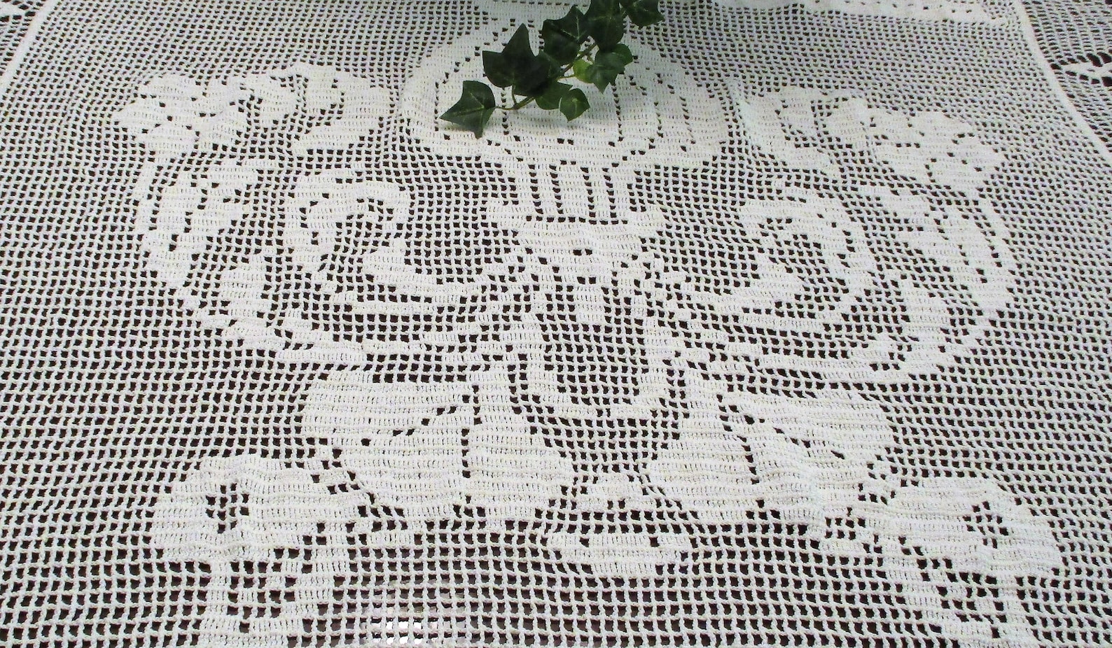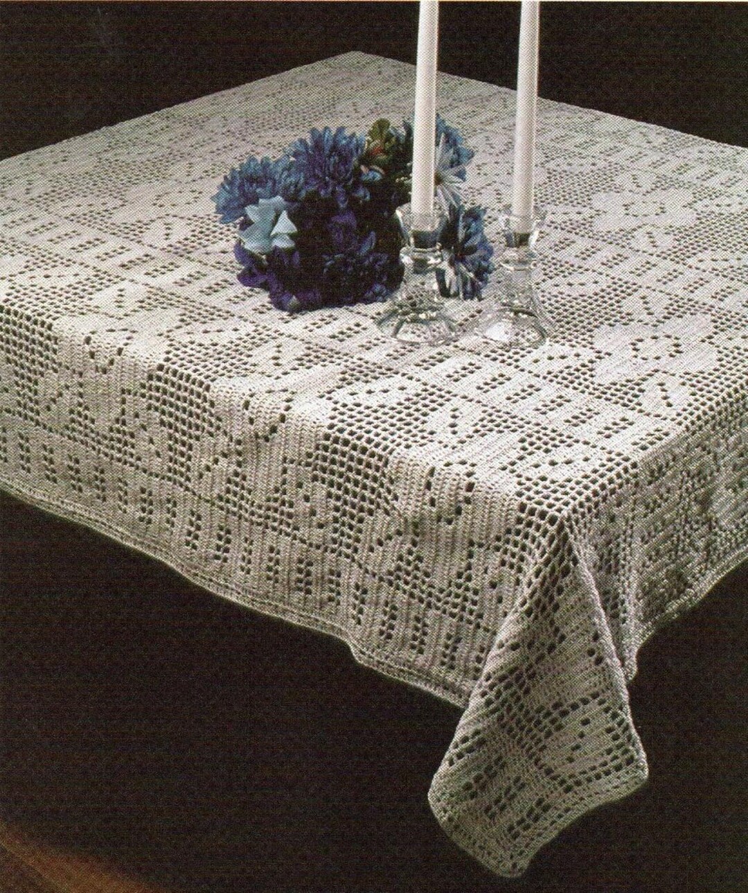 Filet Tablecloth Crochet Pattern Size: 49 X 53 Ins 124 X 135 Cm Lace ...