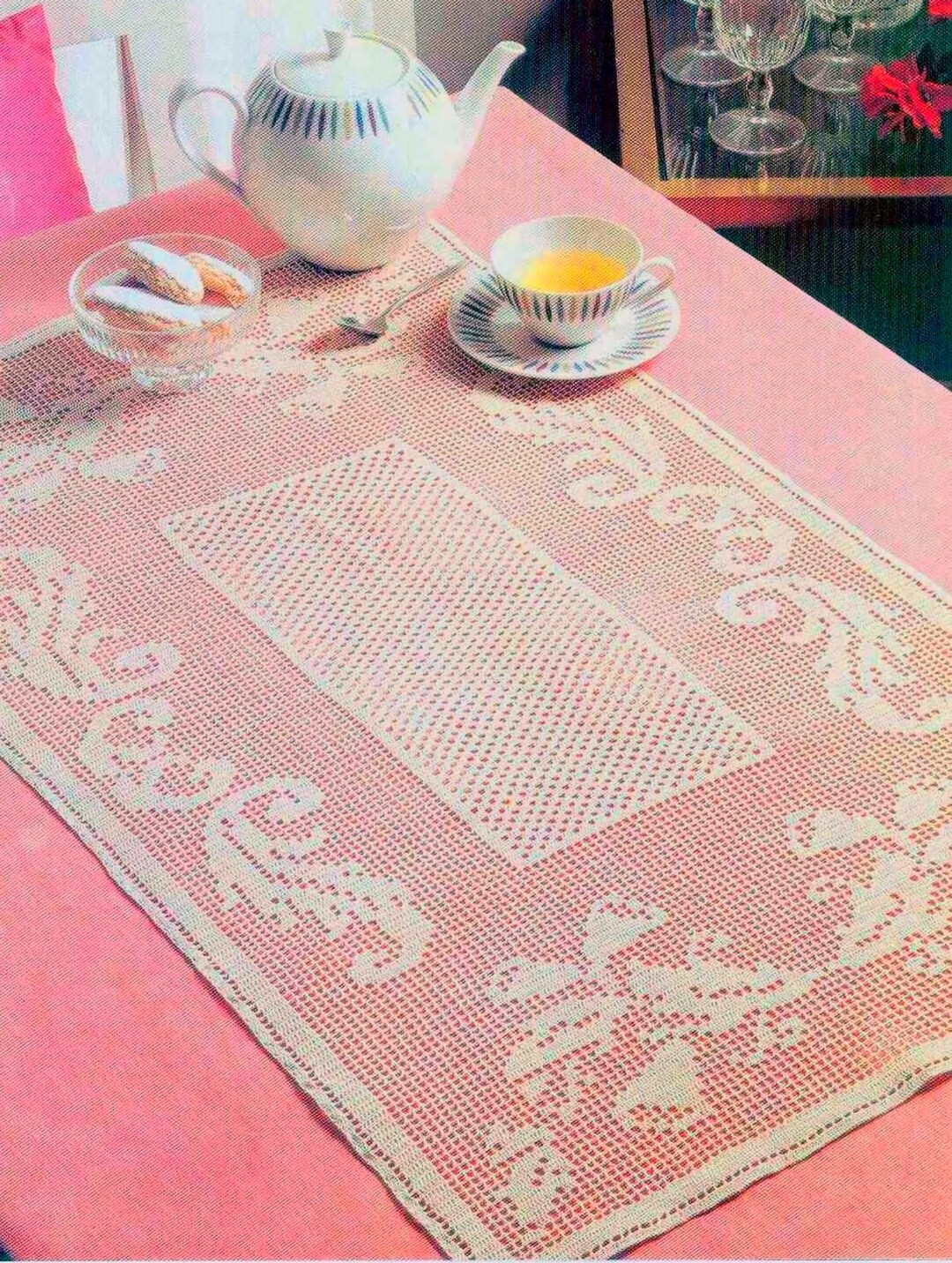 Rectangular doily crochet pattern filet for tray whit teapot - free ...