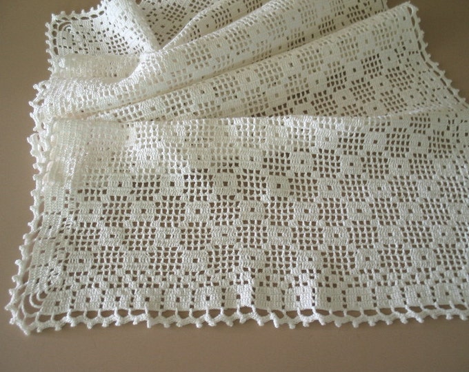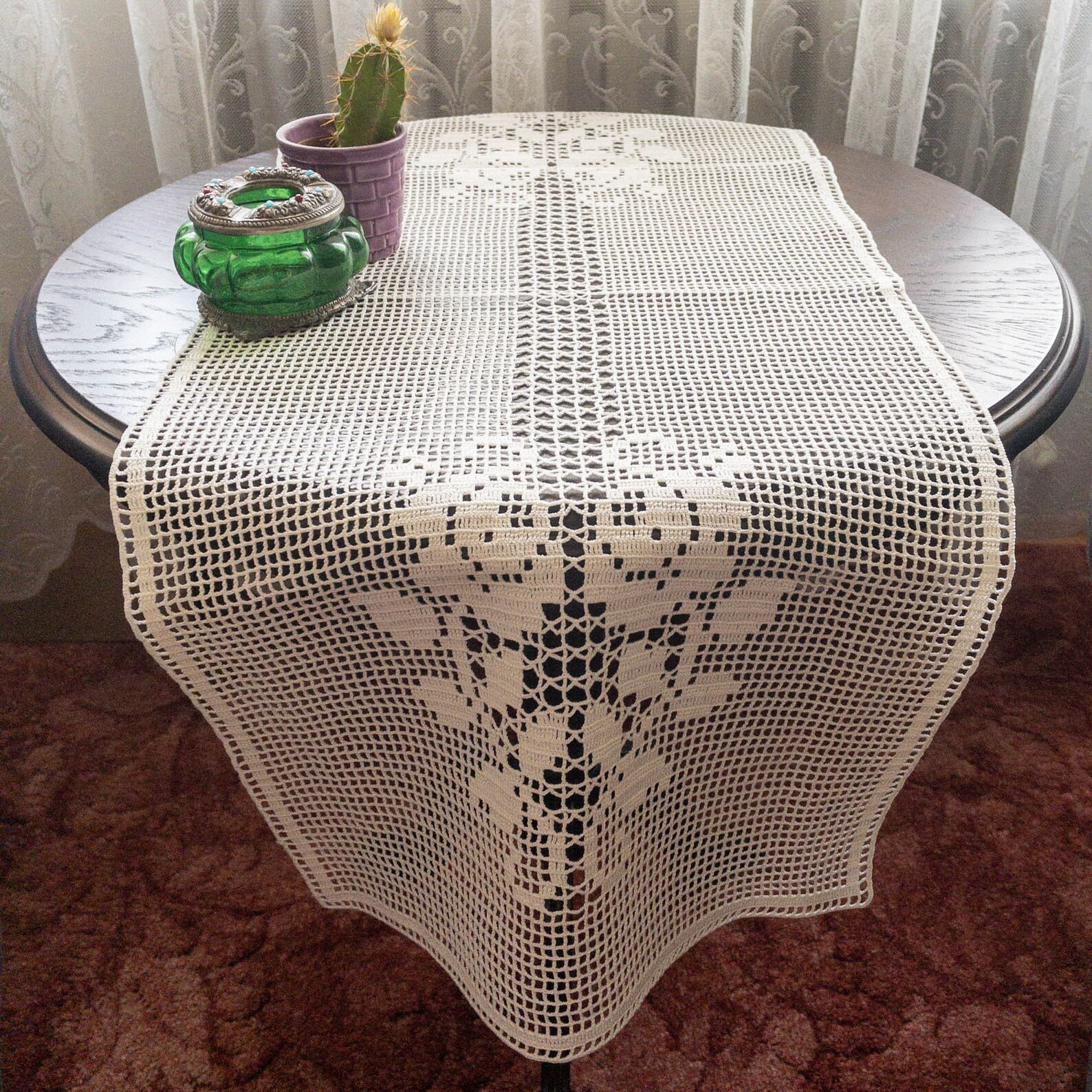 Large Rectangular Filet Crochet Table Runner Dresser Scarf - Etsy ...