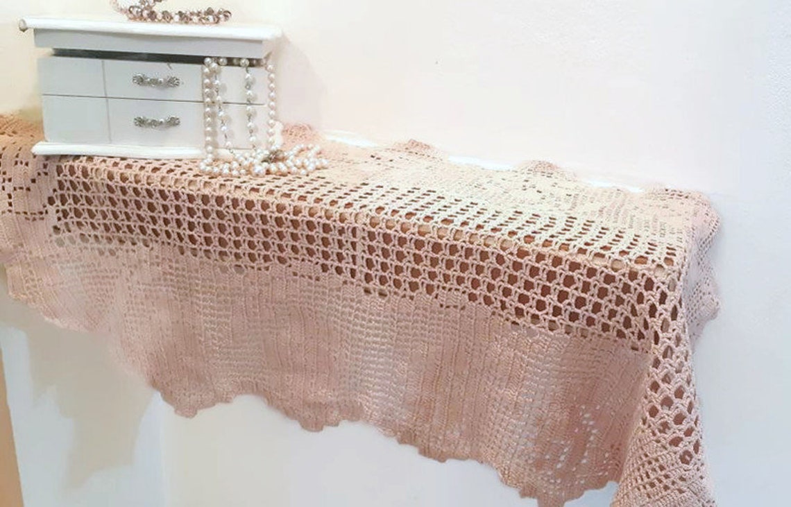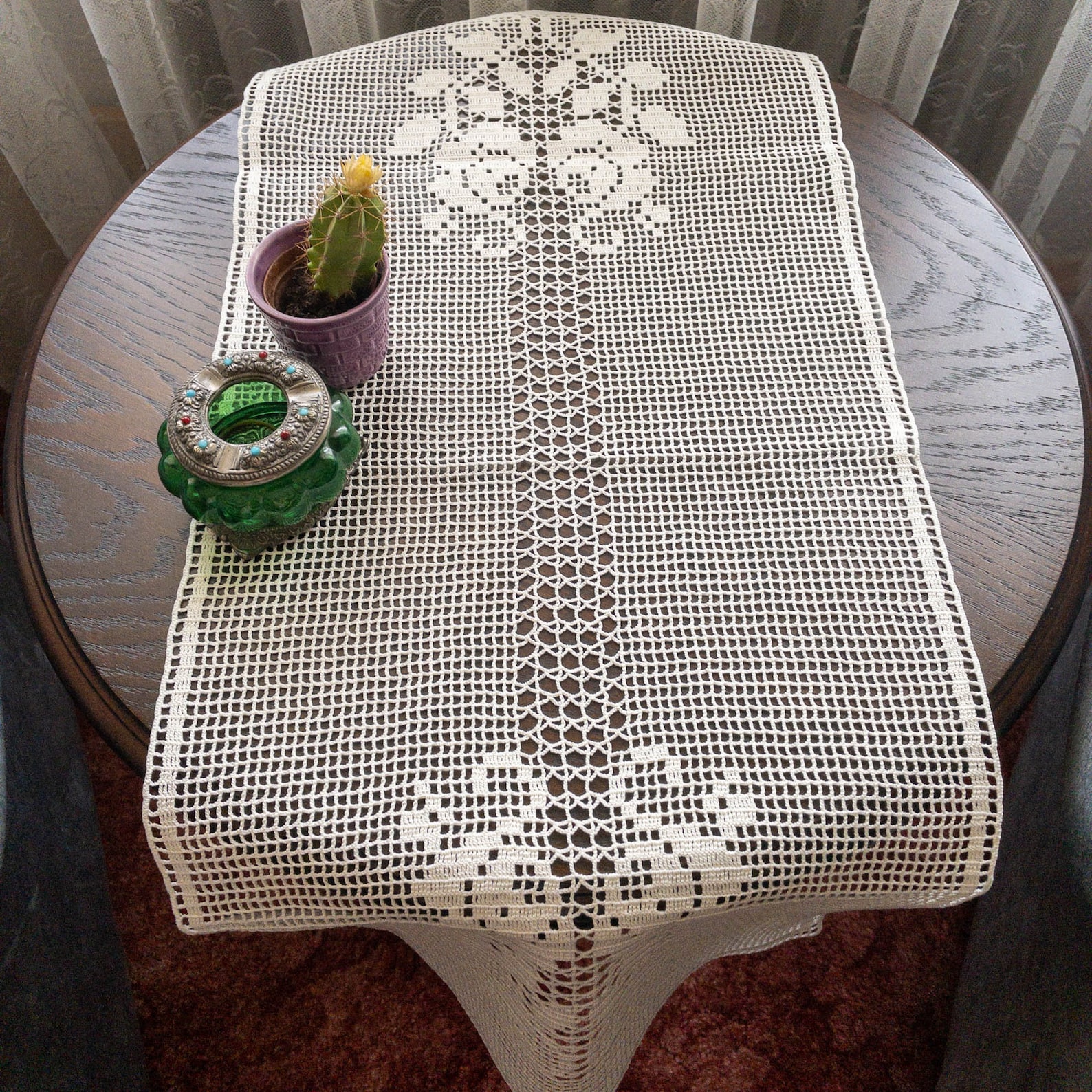 Large Rectangular Filet Crochet Table Runner Dresser Scarf - Etsy