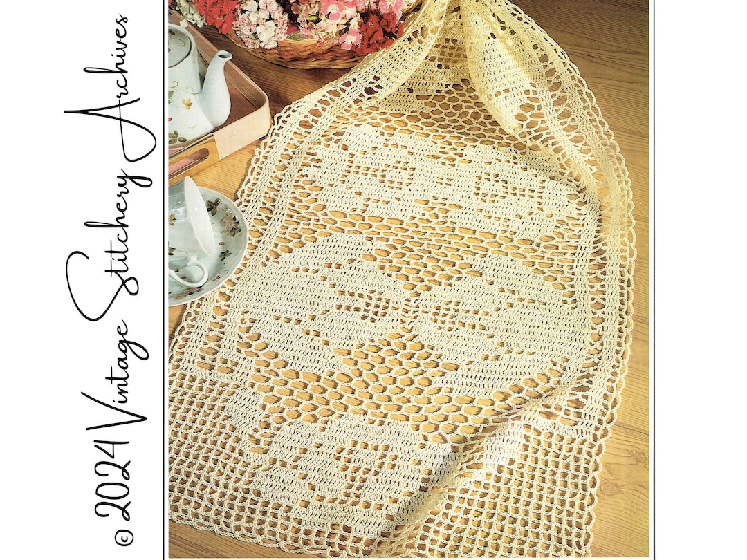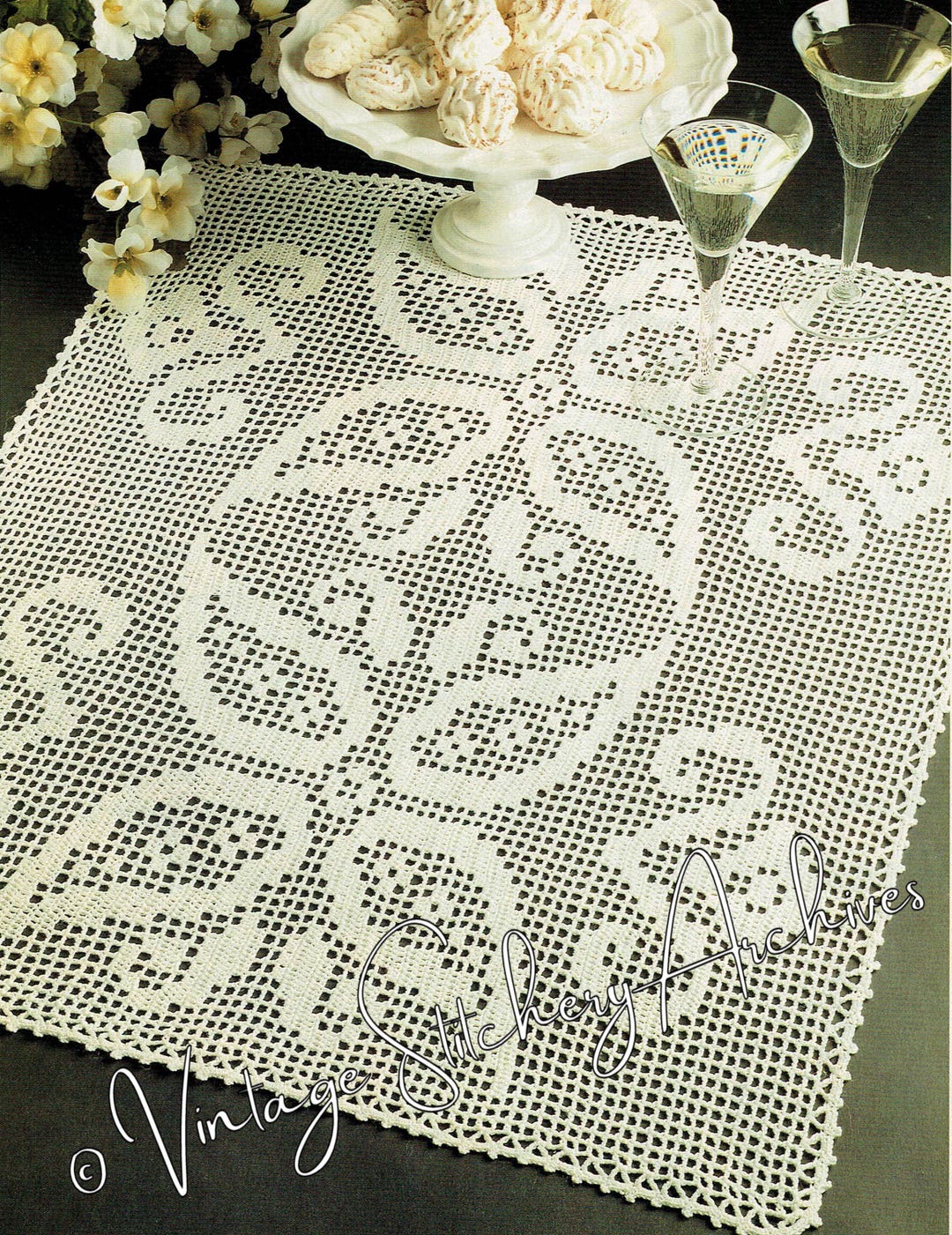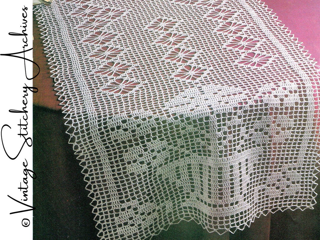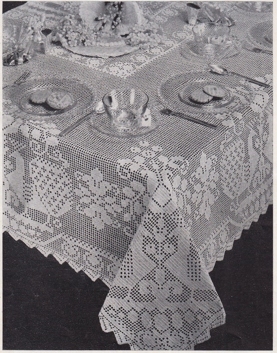Vintage Rectangular Filet Crochet Tablecloth Pattern PDF Instant ...