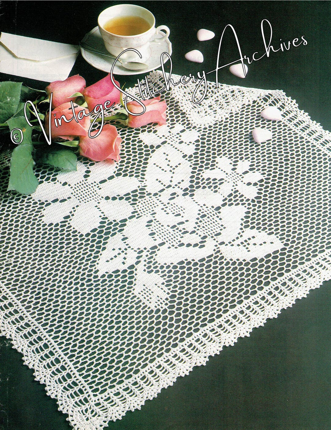 Vintage Filet Crochet Doily Pattern, "posies Rectangle Doily" Digital ...