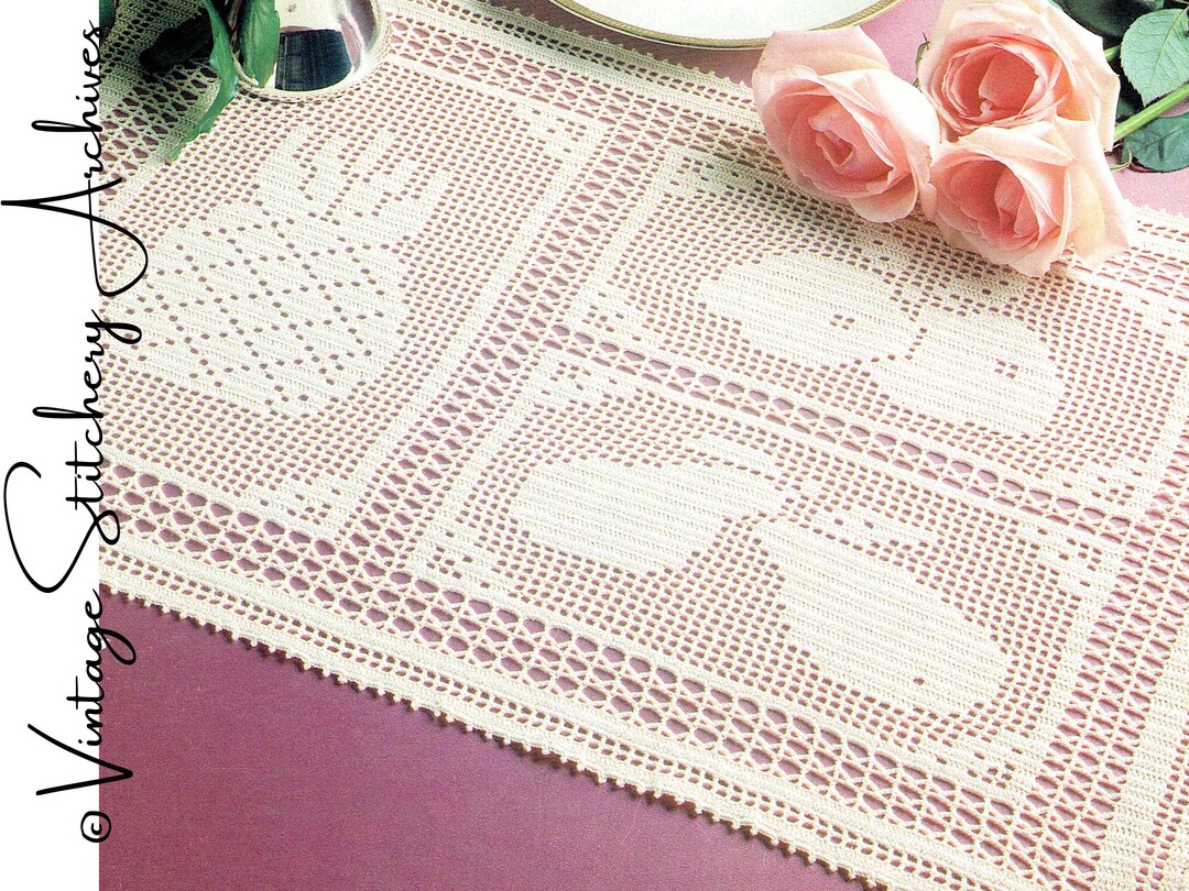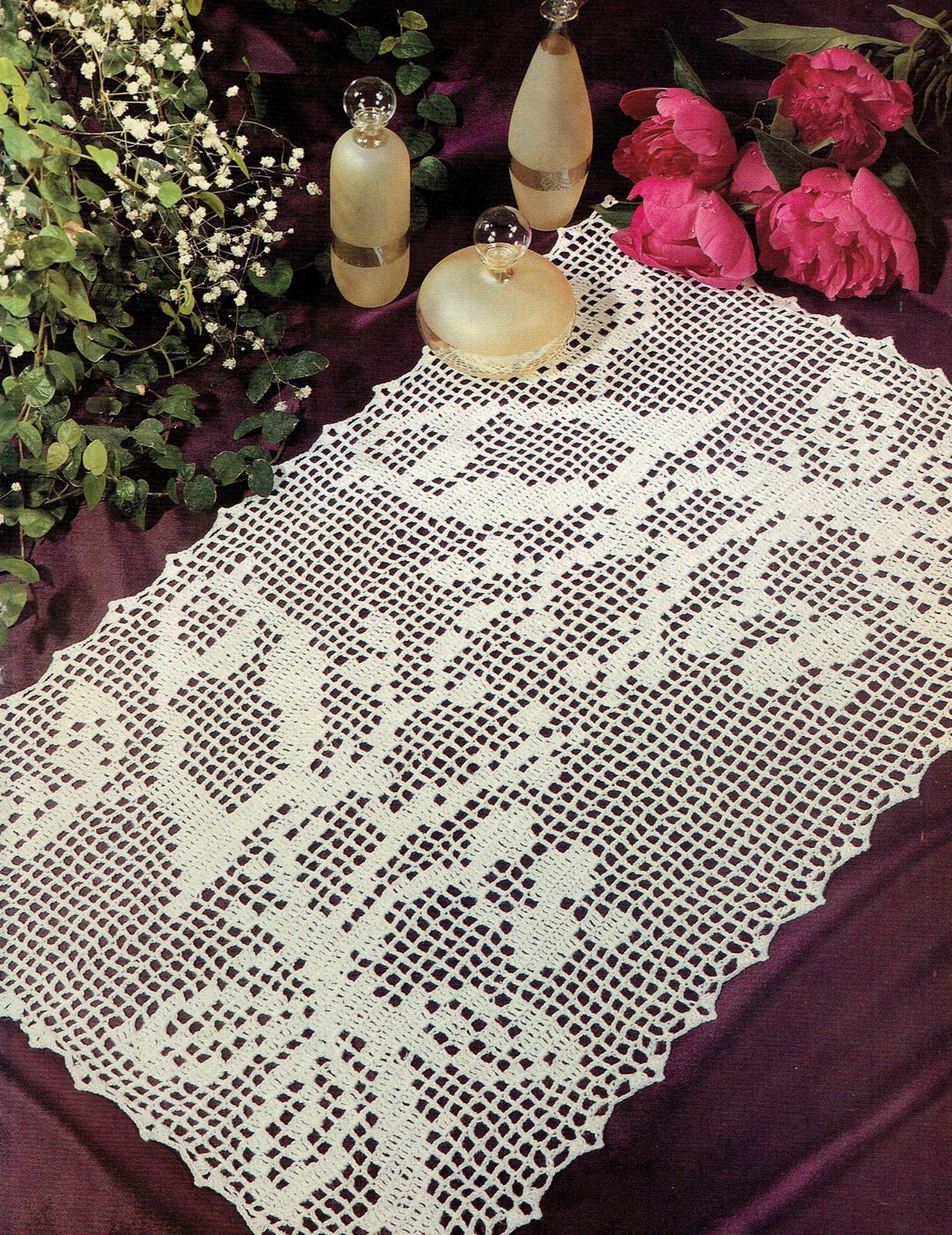 Vintage Filet Crochet Table Runner Pattern, "basket Bouquet Rectangle ...