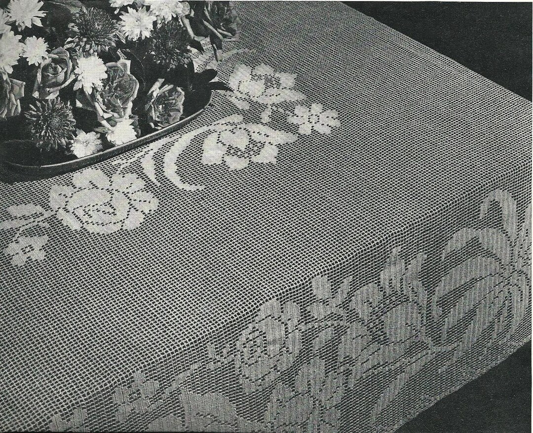 Filet Tablecloth Vintage Crochet Pattern PDF Floral Rectangle - Etsy