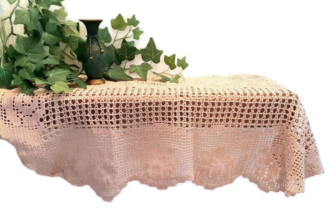 FILET CROCHET TABLECLOTH for Large Rectangle Table Vintage - Etsy