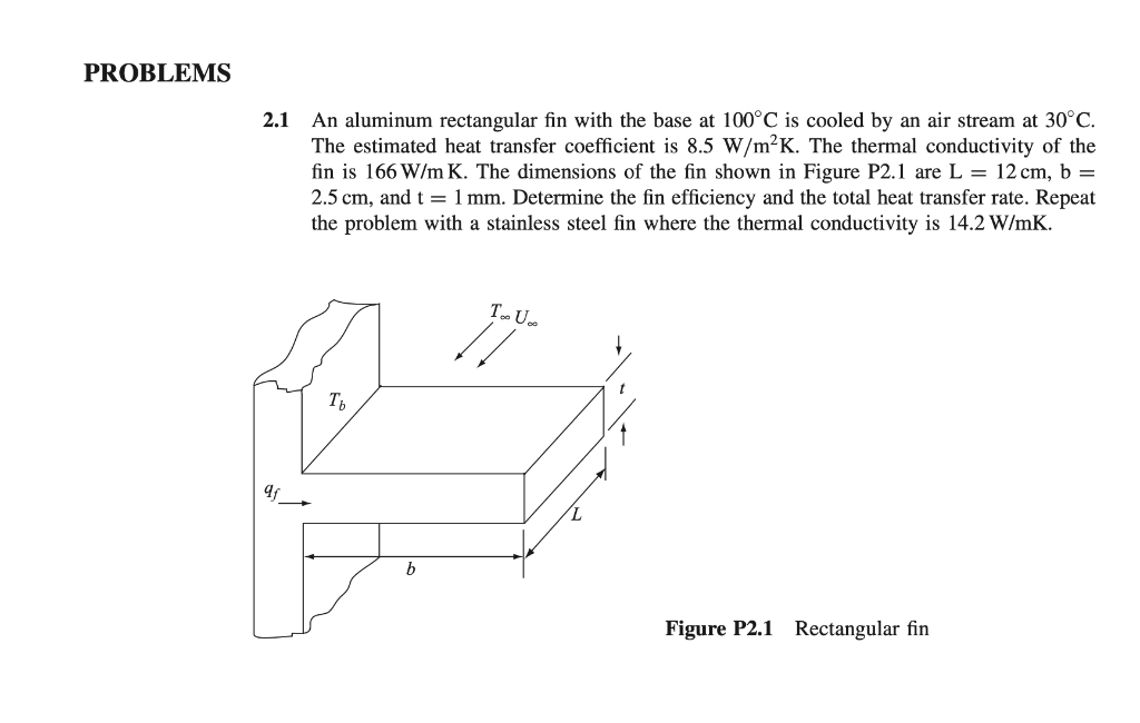 Solved PROBLEMS 2.1 An aluminum rectangular fin with the | Chegg.com