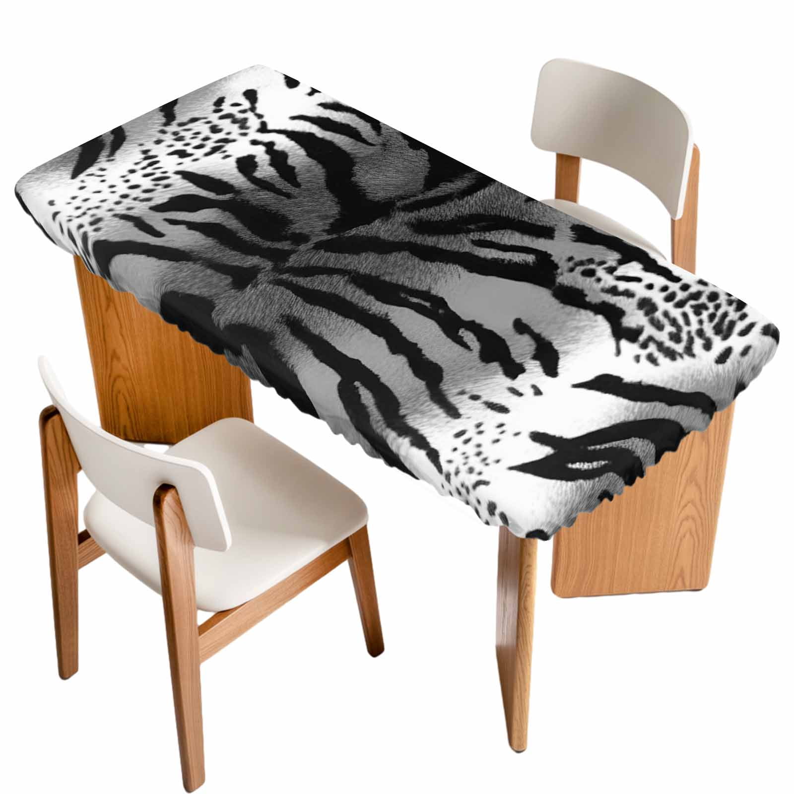 Black And White Leopard Fitted Rectangle Tablecloth 30" x 60" Abstract ...