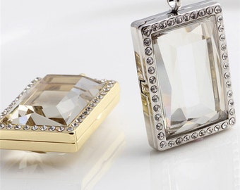 Rounded RECTANGULAR DIAMOND LOCKET Sterling Silver 18 | Etsy