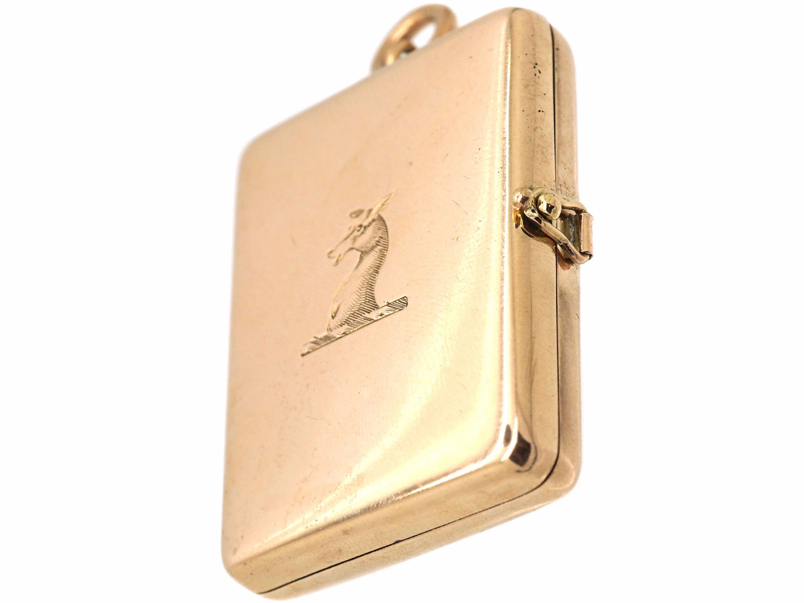 Victorian 18ct Gold Rectangular Locket with Horseshoe & Bloodstone ...